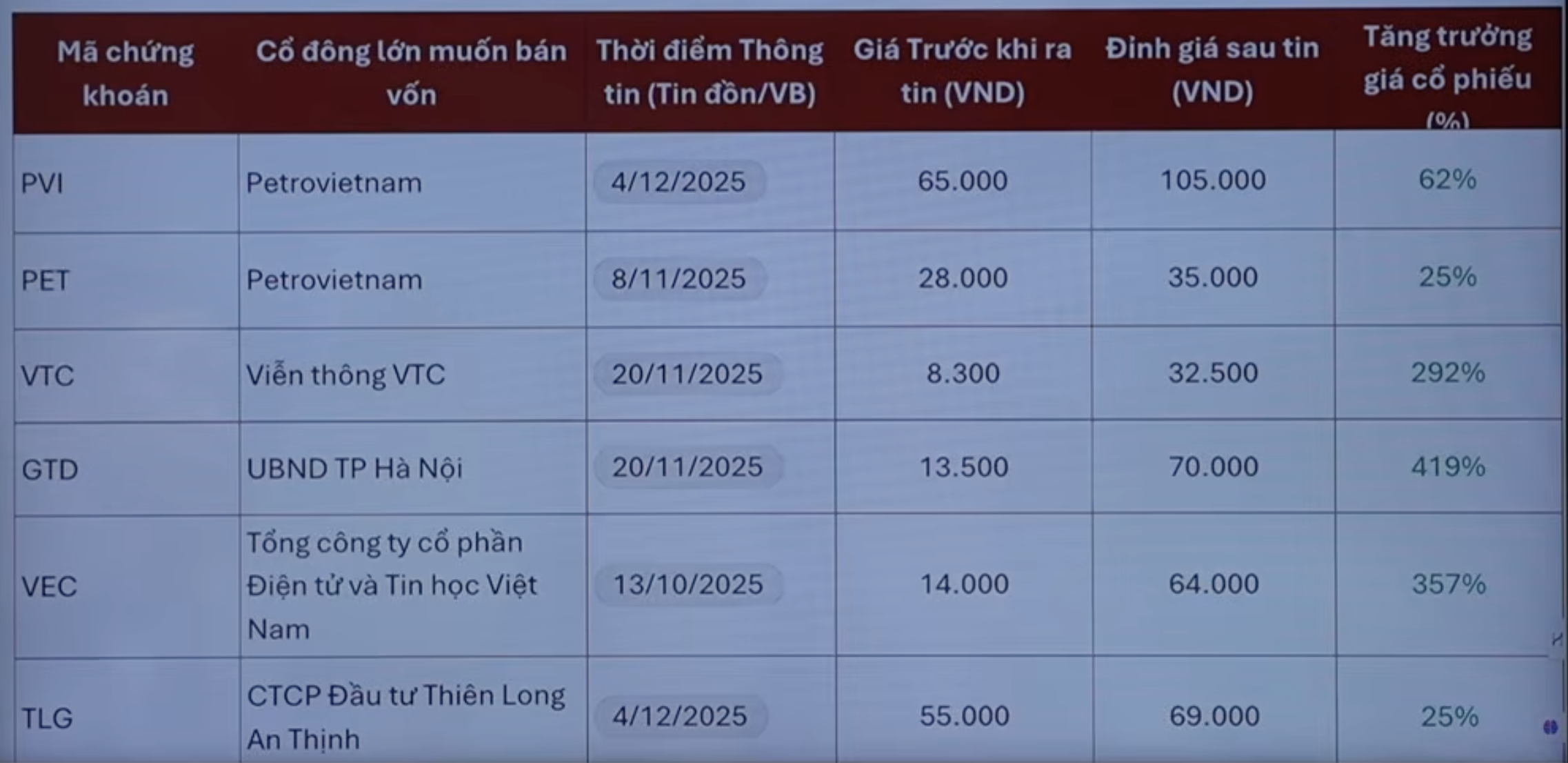 - Thoái vốn: Cổ đông lớn bán lượng cổ phiếu mình nắm giữ ra ngoài (có thể cho nhỏ lẻ hoặc cho các bên khác)
