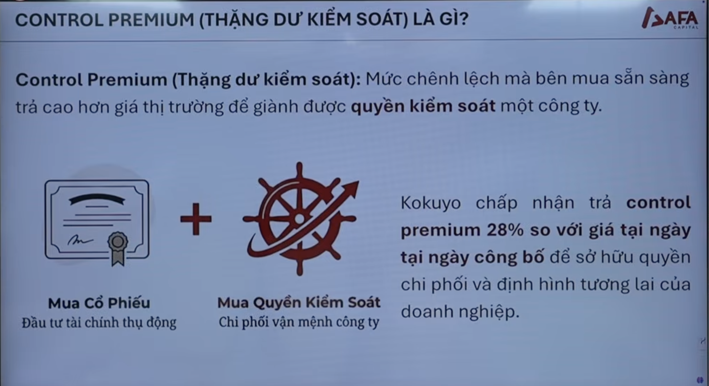 - Kokuyo phải trả thêm 54%. Tỷ lệ này được gọi là Control Premium