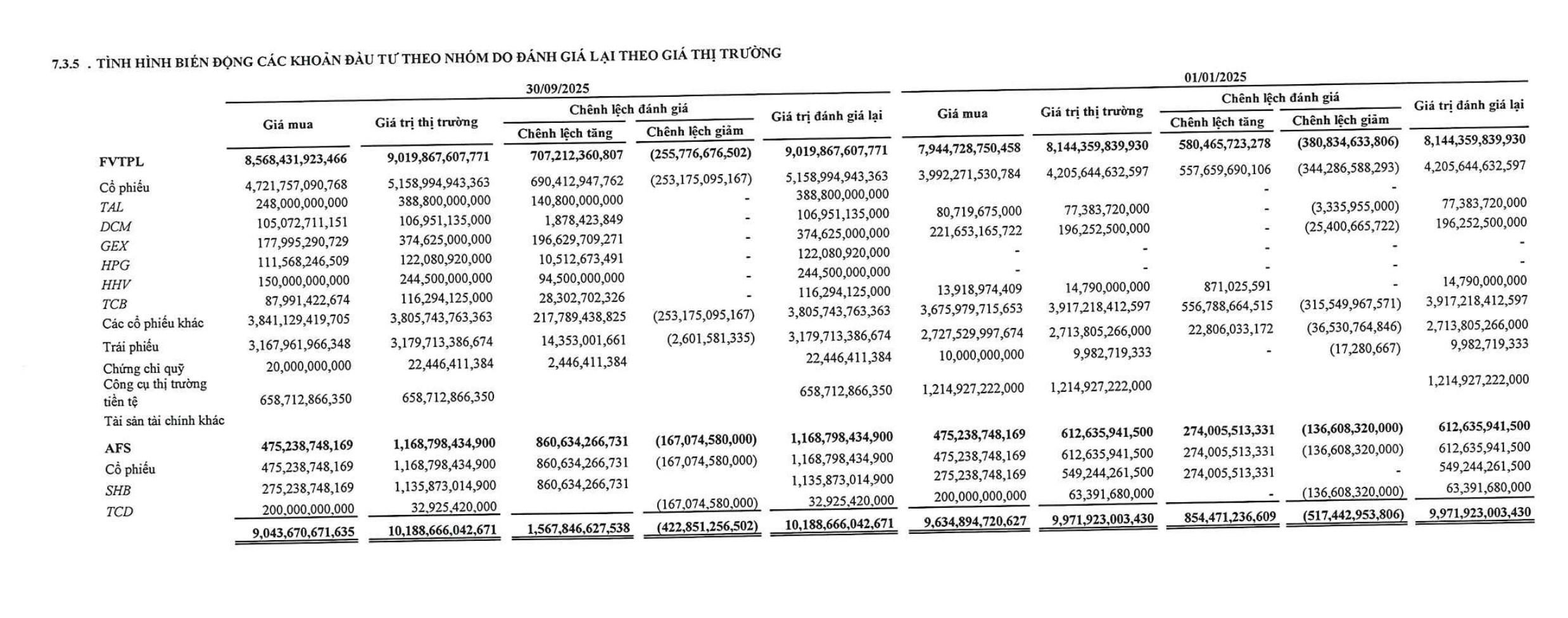 • Khoản đầu tư vào TCD của tự doanh SHS lỗ trong quý III khoảng 31 tỷ, nhưng họ để ở mục AFS Chưa bán thì chưa ghi nhận lỗ.