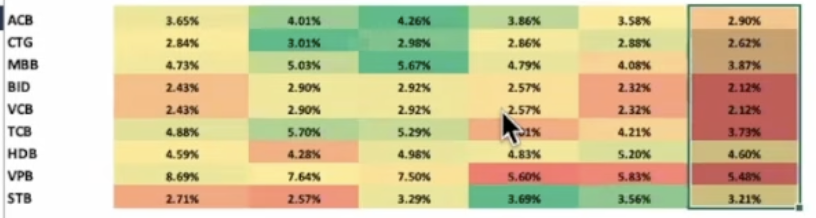 Các cổ phiếu tăng trưởng đều đặn: CTG, MBB, BID, VCB, ACB
