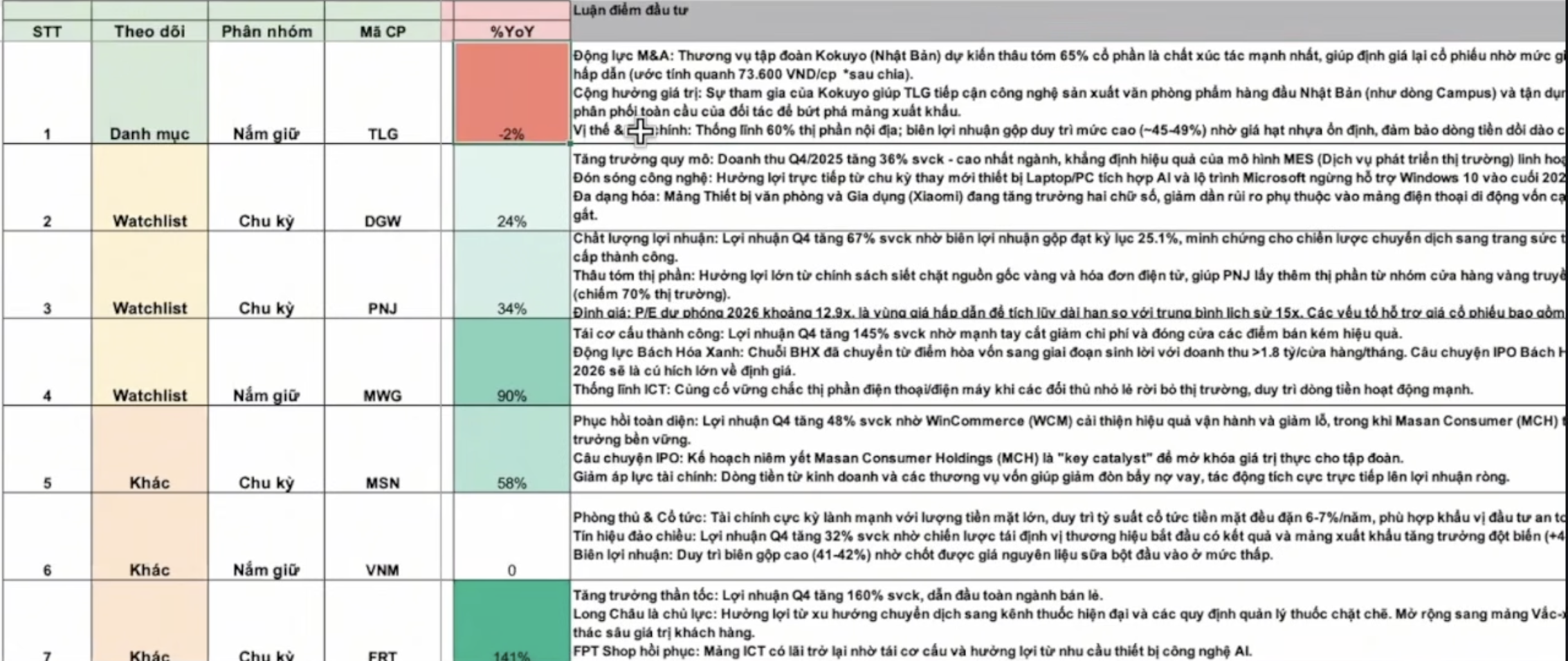 • MWG làm ăn khá tốt, nhưng sắp tới dự định IPO Điện máy xanh Giá cp có thể bị ảnh hưởng. Tuy nhiên, ngành Điện máy là ngành đã bị bão hòa rồi